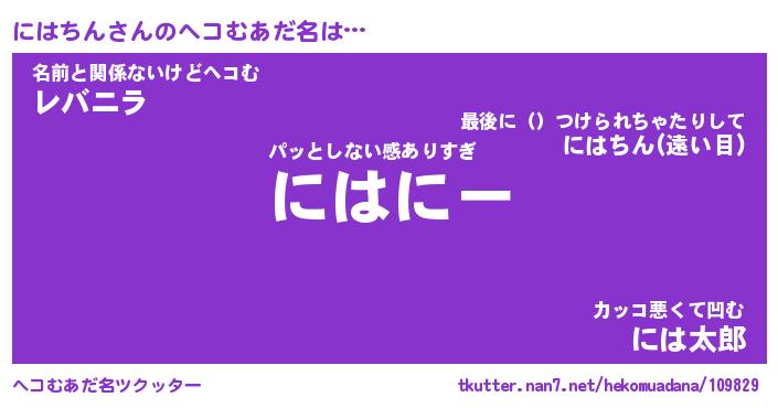 | 2回繰り返すあだ名 | 『にはには』『ににはは』『ぬめぬめ』 |