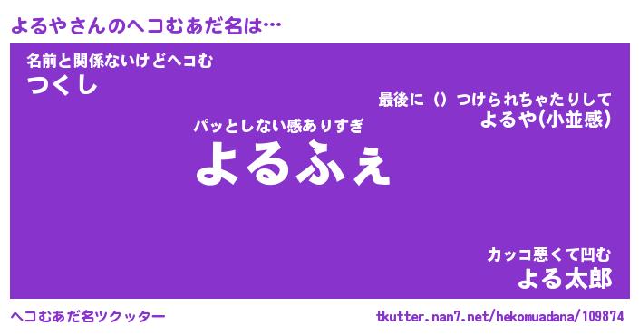 | ポケモン風あだ名 | 『ヨルチュウ』『ヨルヤダネ』 |