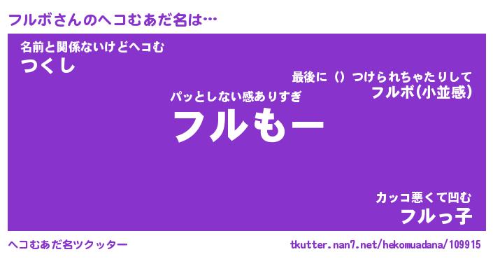 | 可愛いあだ名 | 『フんフん』『フルちー』 |