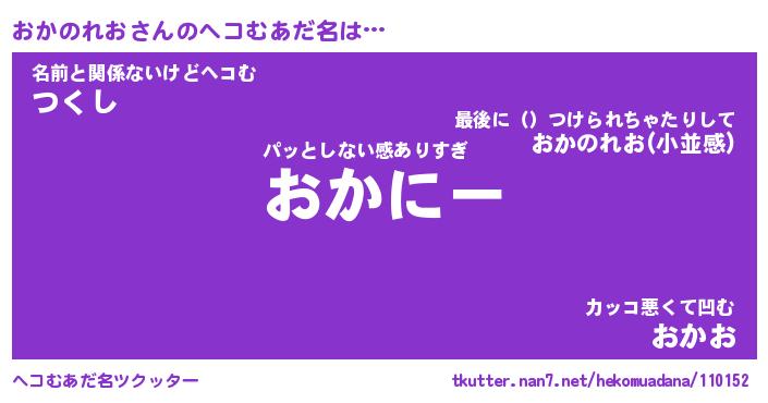 | 男性向けラノベタイトル風あだ名 | 『おかのれおの憂鬱』 |