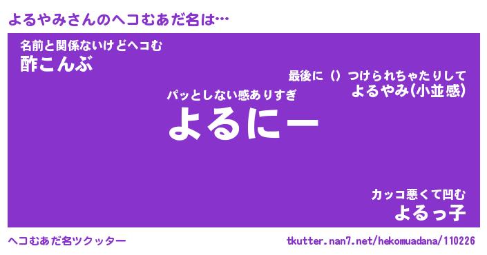 | ポケモン風あだ名 | 『ヨルチュウ』『ヨルヤダネ』 |