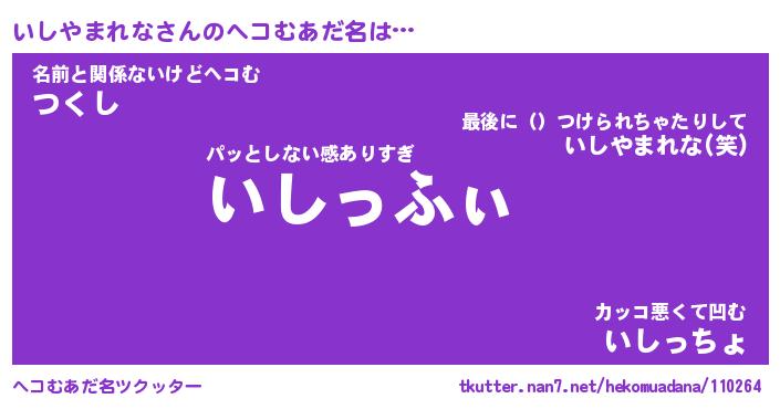 | ヒーロー風カッコイイあだ名 | 『スーパーイシヤマレナ』『幻影騎士イシ』 |