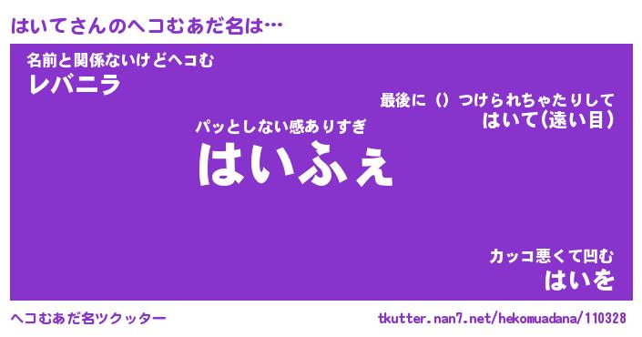 | ポケモン風あだ名 | 『ハイチュウ』『ハイテダネ』 |