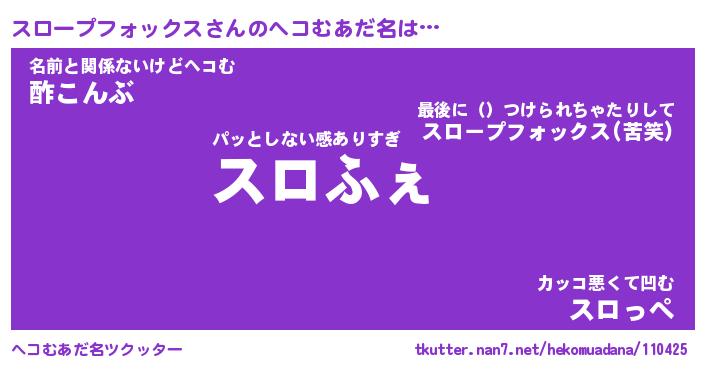 | 男性向けラノベタイトル風あだ名 | 『スロープフォックスアートオンライン』 |