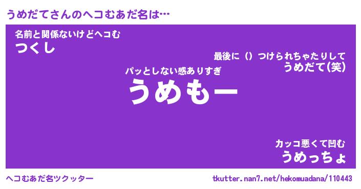 | 意味不明あだ名 | 『ペロリンうめだて』『永久保存うめだて』 |