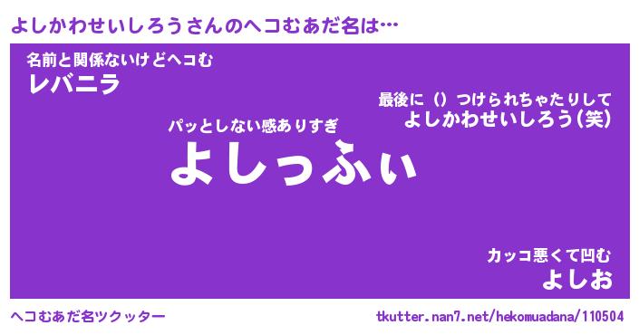| 欧米人風あだ名 | 『マイケルよしかわせいしろう』 |