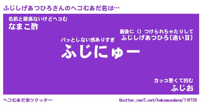 | 意味不明あだ名 | 『ペロリンふじしげあつひろ』 |