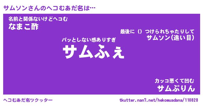 | ポケモン風あだ名 | 『サムチュウ』『サムソダネ』 |
