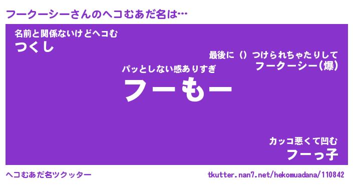 | 男性向けラノベタイトル風あだ名 | 『フークーシーの憂鬱』 |