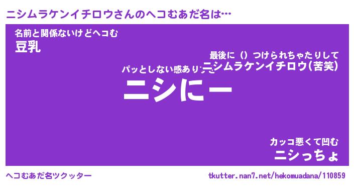| ポケモン風あだ名 | 『ニシチュウ』『ニシムダネ』 |