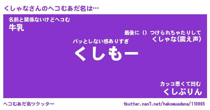 | 欧米人風あだ名 | 『マイケルくしゃな』『ウサインくしゃな』 |