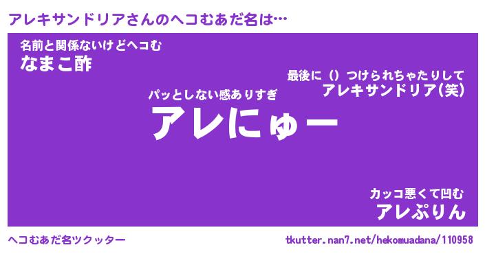 | ヒーロー風カッコイイあだ名 | 『スーパーアレキサンドリア』 |