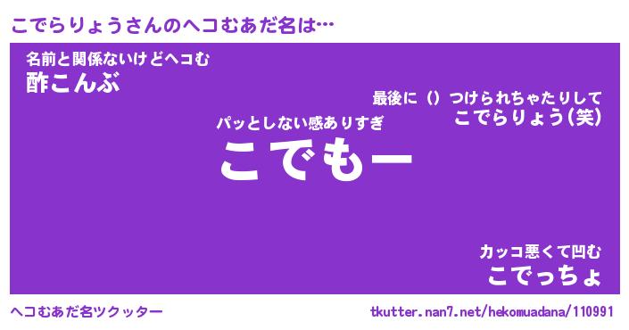 | 恥ずかしいあだ名 | 『プリティーこでらりょう』『こでっちょ』 |