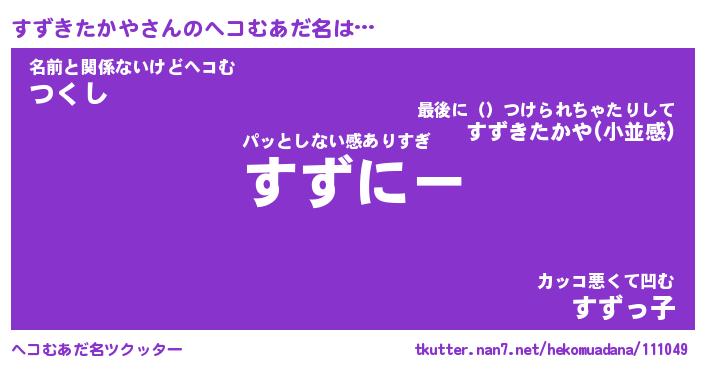 | 男性向けラノベタイトル風あだ名 | 『すずきたかやの憂鬱』 |