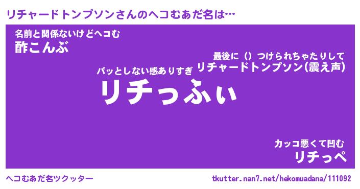 | 胡散臭い通販商品みたいなあだ名 | 『モテモテ間違いなし霊験あらたかなお札…その名も「リチャードトンプソン」』 |