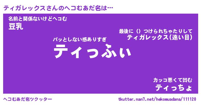 | ポケモン風あだ名 | 『ティチュウ』『ティガダネ』 |