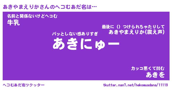 | 2回繰り返すあだ名 | 『あきあき』『ああきき』『きしきし』 |