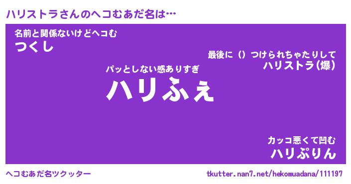 | ファンタジー風あだ名 | 『ハリフェル』『エターナルハリストラー』 |