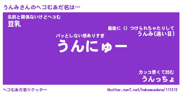 | 意味不明あだ名 | 『ペロリンうんみ』『うんみフォーエバー』 |