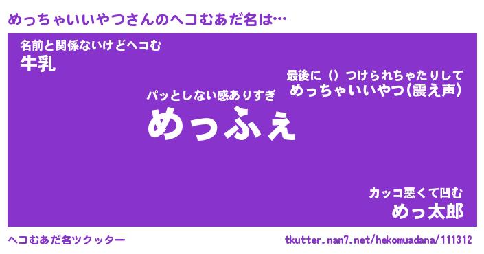 | 2回繰り返すあだ名 | 『めっめっ』『めめっっ』『ぬれぬれ』 |