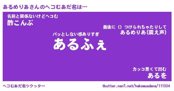 | 肩書あだ名 | 『あるめりあCEO』『あるめりあ大統領』 |