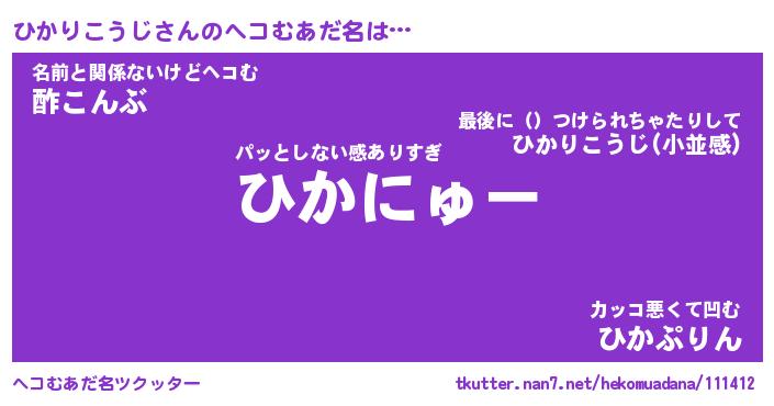 | 男性向けラノベタイトル風あだ名 | 『ひかりこうじの憂鬱』 |