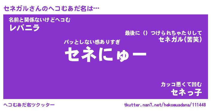 | ファンタジー風あだ名 | 『セネフェル』『エターナルセネガルー』 |
