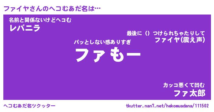 | ポケモン風あだ名 | 『ファチュウ』『ファイダネ』 |