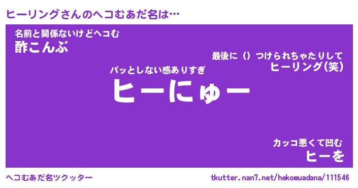 | ヒーロー風カッコイイあだ名 | 『スーパーヒーリング』『幻影騎士ヒー』 |