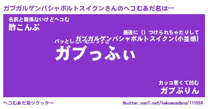 | 胡散臭い通販商品みたいなあだ名 | 『モテモテ間違いなし霊験あらたかなお札…その名も「ガブガルゲンバシャボルトスイクン」』 |