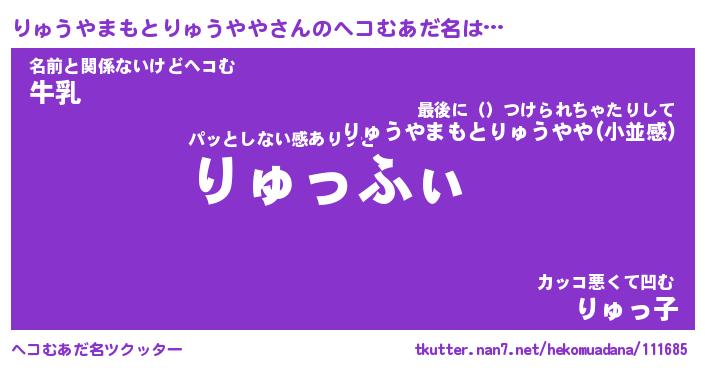 | 男性向けラノベタイトル風あだ名 | 『りゅうやまもとりゅうややの憂鬱』 |