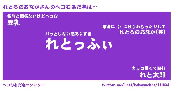 | 意味不明あだ名 | 『ペロリンれとろのおなか』 |