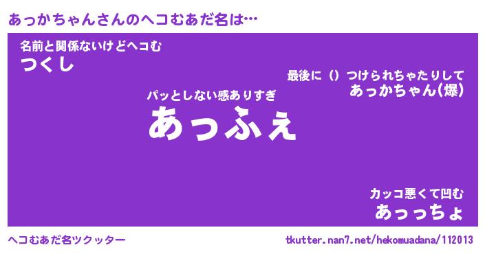 | 意味不明あだ名 | 『ペロリンあっかちゃん』 |