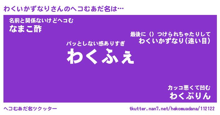 | 胡散臭い通販商品みたいなあだ名 | 『億万長者になれる水晶球…その名も「わくいかずなり」』 |