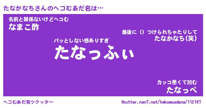 | ファンタジー風あだ名 | 『タナフェル』『エターナルタナカナチー』 |