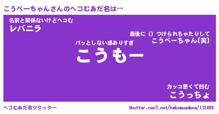 | 意味不明あだ名 | 『ペロリンこうぺーちゃん』 |