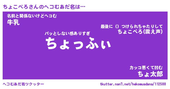 | ヒーロー風カッコイイあだ名 | 『スーパーチョコペロ』『暗黒騎士チョ』 |