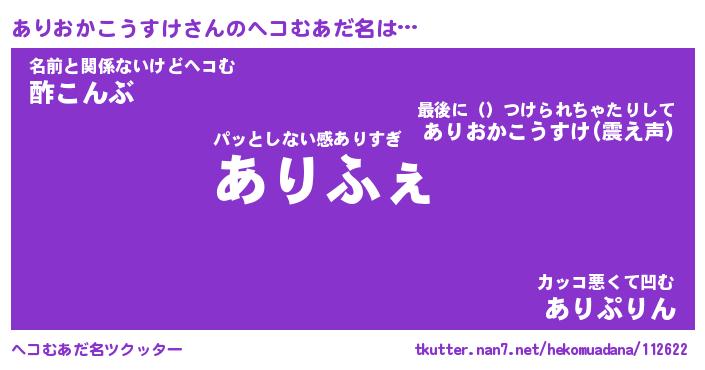 | 意味不明あだ名 | 『ペロリンありおかこうすけ』 |
