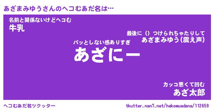| ポケモン風あだ名 | 『アザチュウ』『アザマダネ』 |