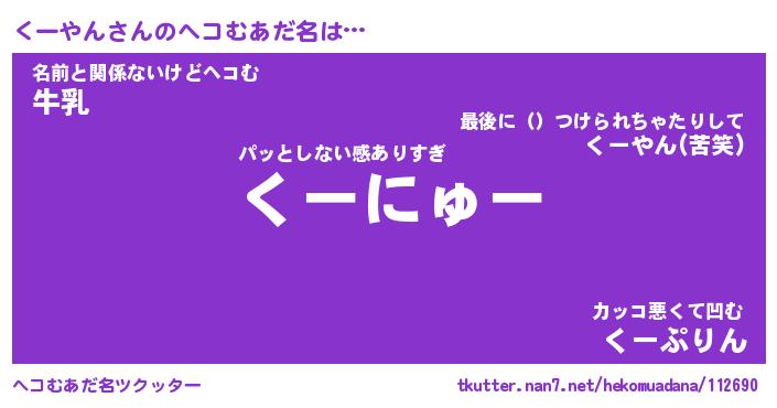 | 意味不明あだ名 | 『ペロリンくーやん』『永久保存くーやん』 |