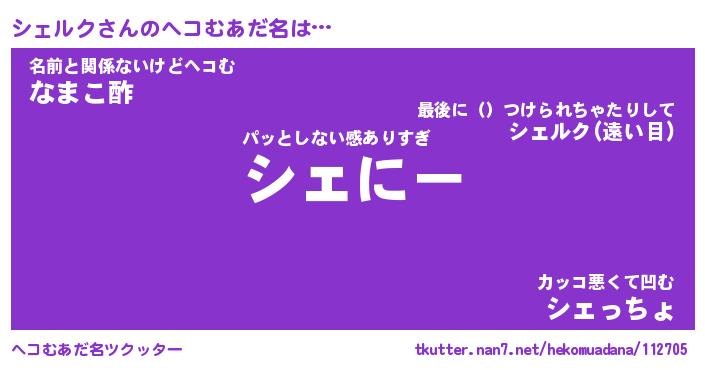 | 意味不明あだ名 | 『ペロリンシェルク』『永久保存シェルク』 |