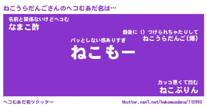 | ヒーロー風カッコイイあだ名 | 『スーパーネコウラダンゴ』 |