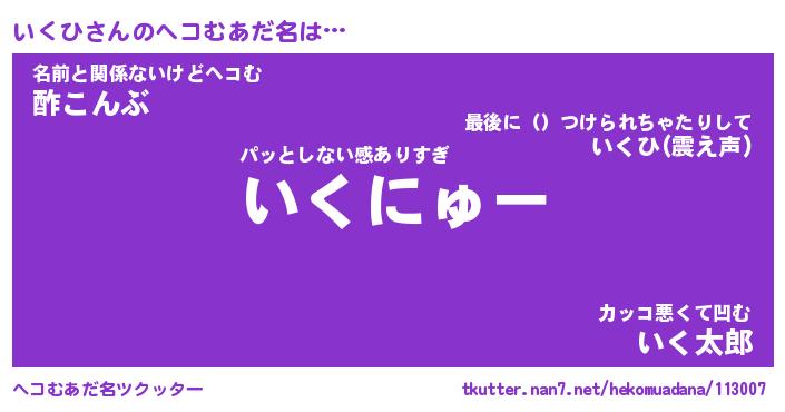 | 意味不明あだ名 | 『ペロリンいくひ』『いくひフォーエバー』 |