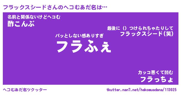 | 男性向けラノベタイトル風あだ名 | 『フラックスシードアートオンライン』 |