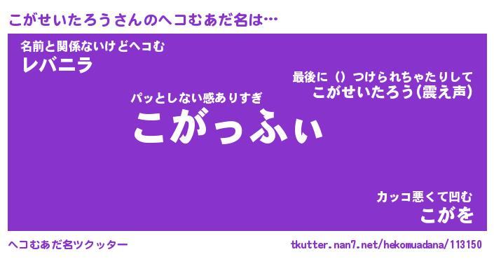 | 肩書あだ名 | 『こがせいたろう御曹司』 |