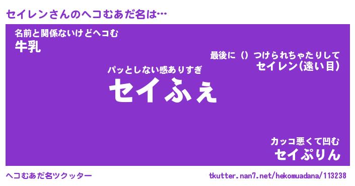 | ファンタジー風あだ名 | 『セイフェル』『エターナルセイレンー』 |