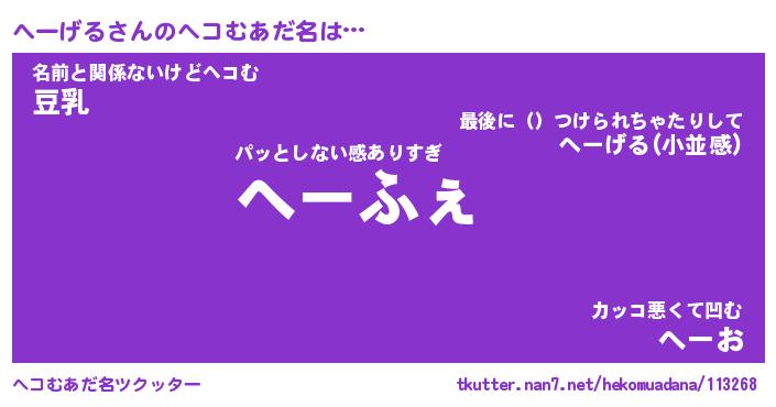 | 意味不明あだ名 | 『ペロリンへーげる』『永久保存へーげる』 |