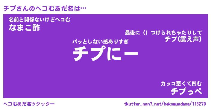 | ポケモン風あだ名 | 『チプチュウ』『チプダネ』『ヒチプ』 |
