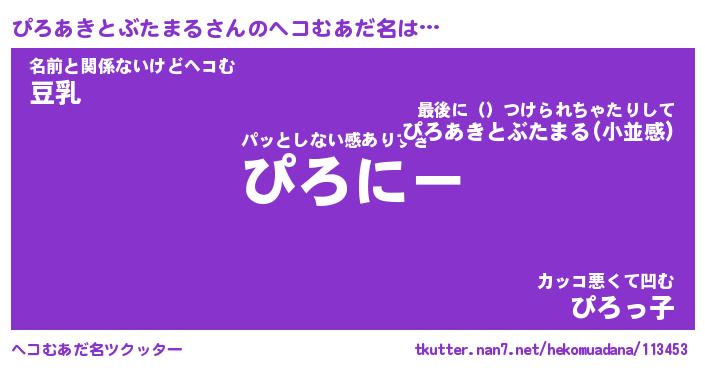 | 意味不明あだ名 | 『ペロリンぴろあきとぶたまる』 |