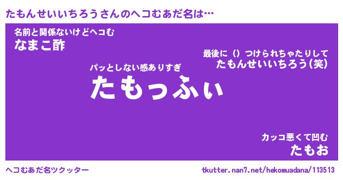 | 胡散臭い通販商品みたいなあだ名 | 『億万長者になれる霊験あらたかなお札…その名も「たもんせいいちろう」』 |